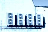 Condenser units for air conditioning system wall mounted outdoors