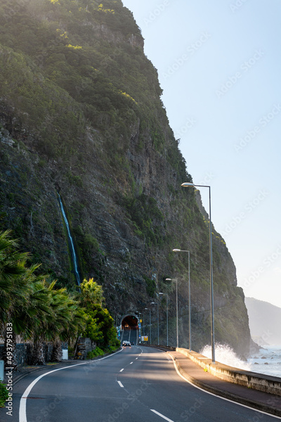 Road with tunnel along Madeira coast