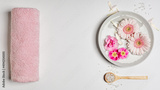 SPA setting on white background, flat lay