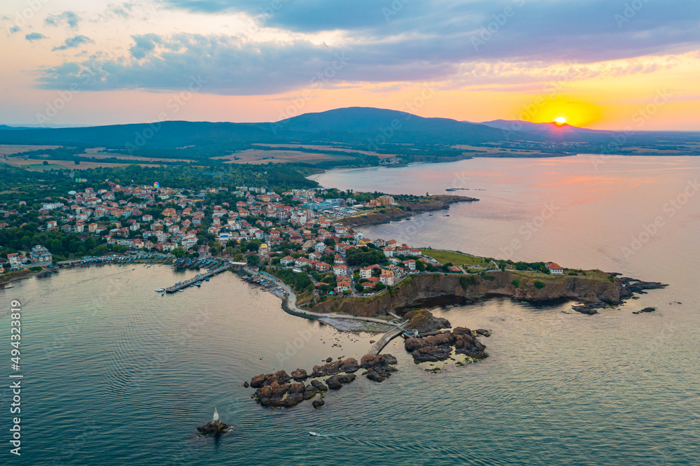 Sunset aerial view of Bulgarian seaside town Ahtopol.