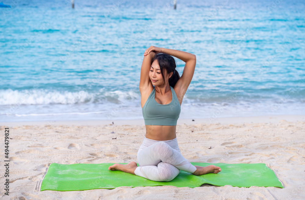 Young woman practicing yoga in the nature .Yoga is meditation and healthy sport concept