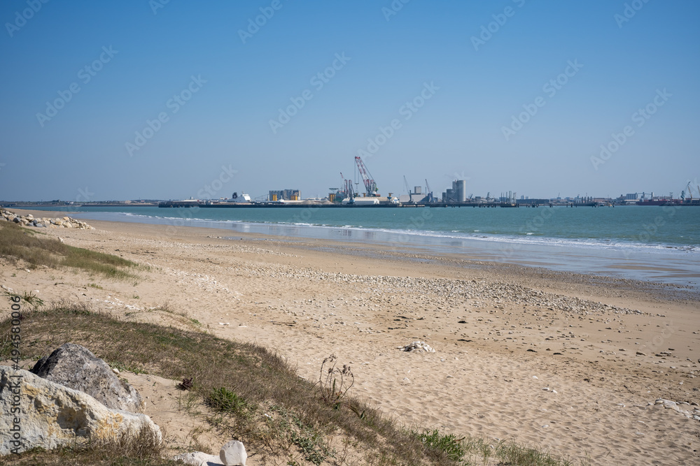View of La Pallice, the trade port of La Rochelle. freight ships and cranes in the trade port