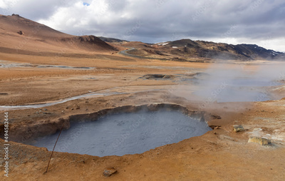 Hverir, Geothermal spot noted for its bubbling pools of mud and steaming fumaroles emitting sulfuric gas.