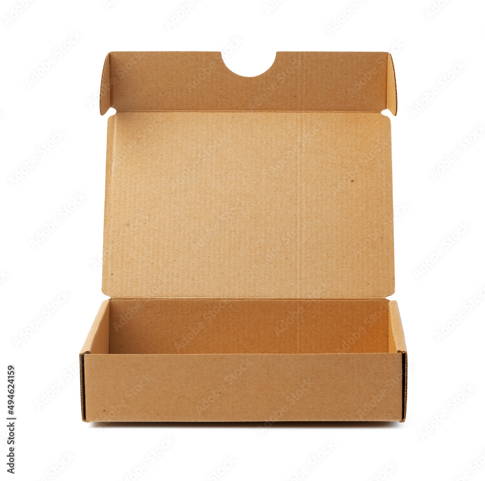 Open brown cardboard box isolated on white