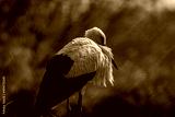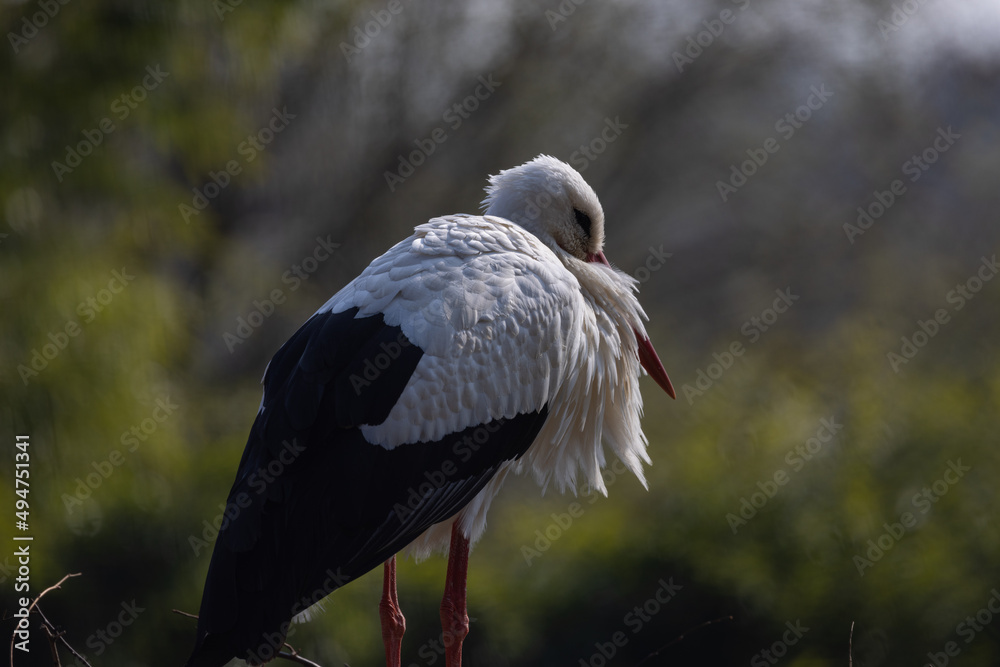 A white stork sits in its nest and waits until it can deliver the next babies. A really big bird, mostly found in Europe and Africa.