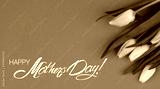 Happy Mother's Day greeting card with a congratulatory calligraphic inscription on a bright floral background. A photo of flowers with lettering ready-made for congratulating your mom