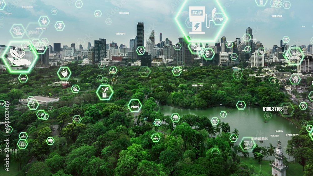 Green city technology shifting towards sustainable alteration concept by clean energy , recycling and zero waste management to reduce pollution generation and achieve ESG goals .