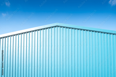 Abstract image of a newly built warehouse for a well known distribution company. Saturated colours help highlight the symmetrical structure.