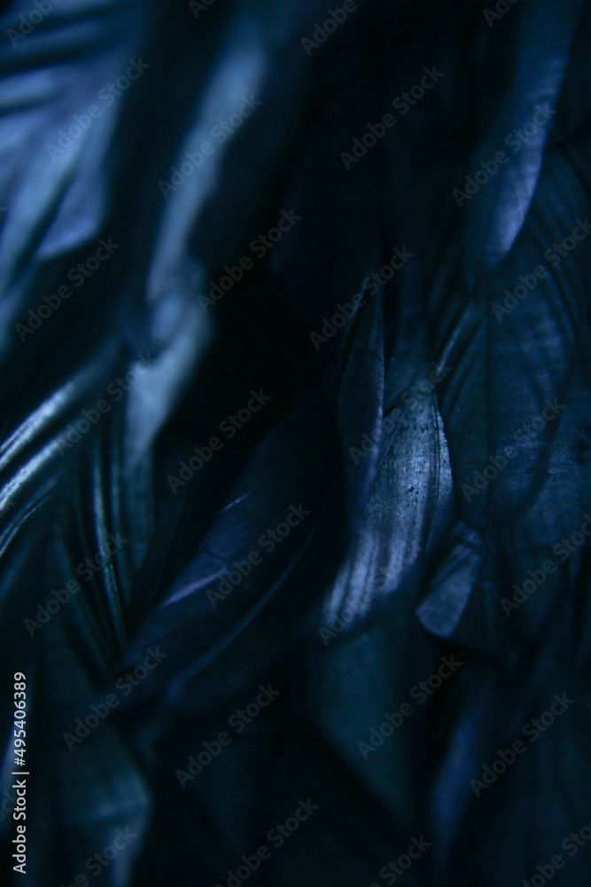 Blue plumage, beautiful blue bird feathers close-up