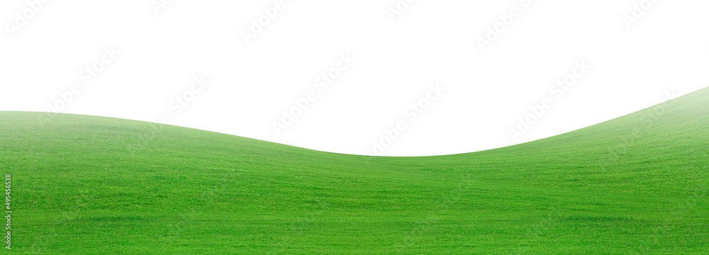 Green grass field isolated oMeadow green with fog smoke floats up isolated on white background, for a montage product display. with clipping path