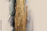 Art Abstract watercolor and alcohol ink marble flow blot painting with gold line. Color canvas texture horizontal background.