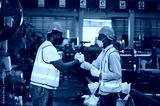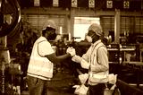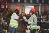 Teamwork African American worker in the factory.Black man afro work heavy industrial