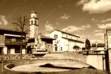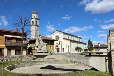 Main square of Campoformido, an Italian town in the Friuli region, with the peace statue in memory of the Treaty of Campo Formio, old name of the village.