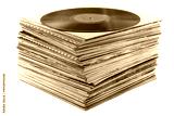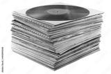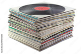 pile of old vinyl discs isolated on white background