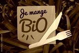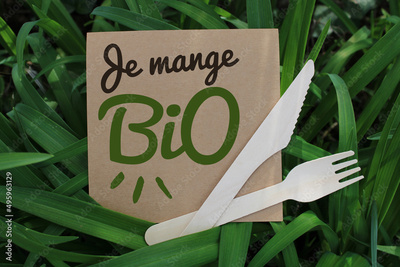 Acheter local, produits locaux, fourchette et couteau dans la prairie