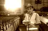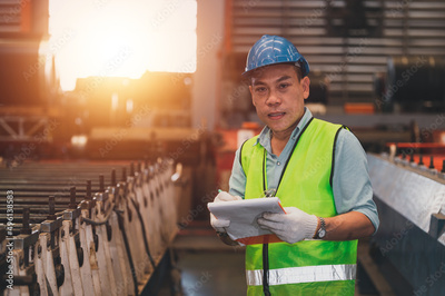 Asian engineer working control machine in factory.