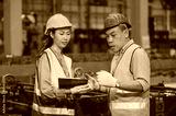 Asian team employee working in factory,Group of Engineer Asia are control manufacturing in factory industrial