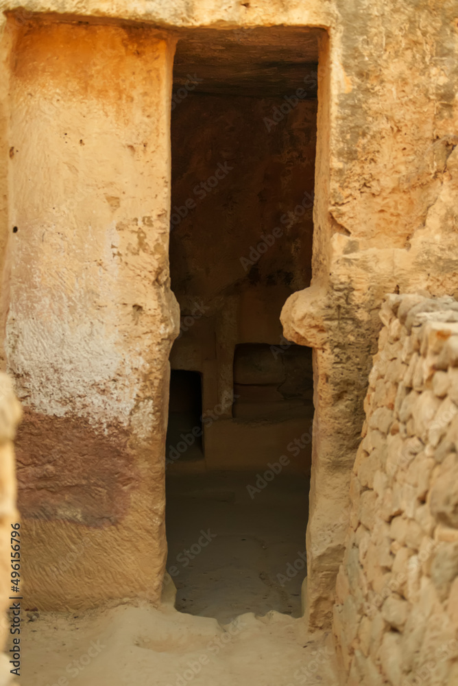 Underground tombs in Necropolis. Tombs of the Kings in Paphos city in Cyprus.