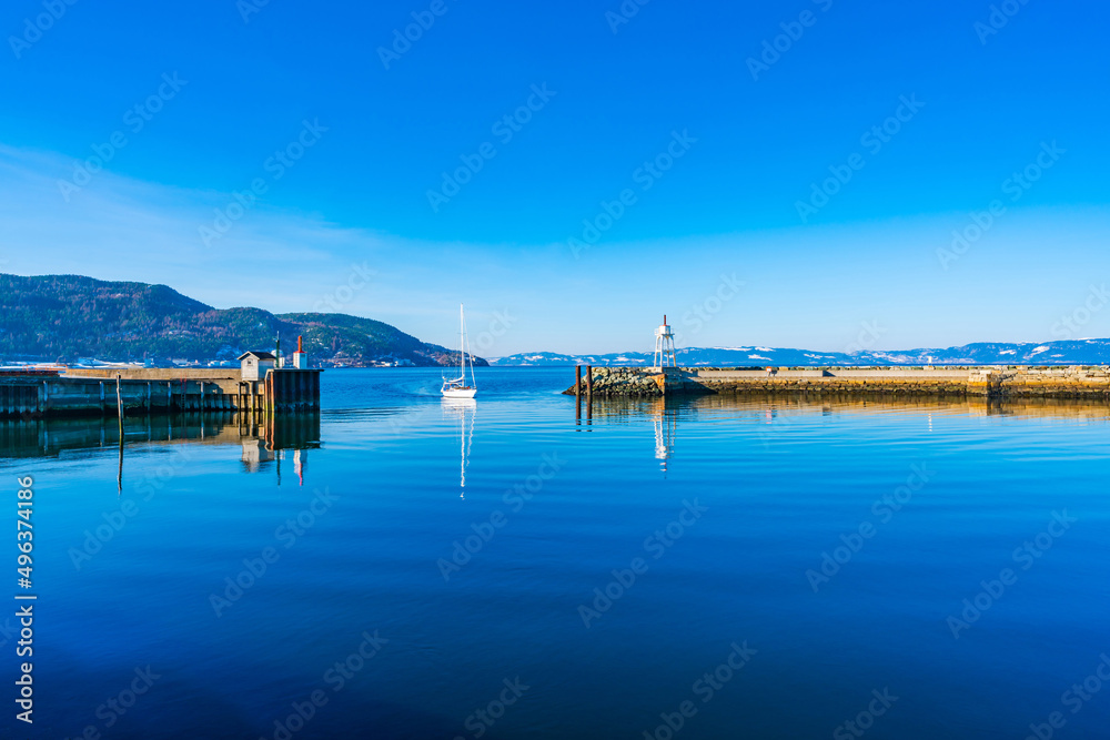 Entrance to Trondheim Harbour and view of Trondheim fjord (Trondheimsfjorden), an inlet of the Norwegian Sea, Norway