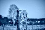 drewniany słup i druty metalowe, część ogrodzenia