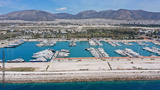 Aerial drone photo of famous Marina of Agios Kosmas and former Athens international airport of Elliniko in Athens riviera area, Glifada, Attica, Greece