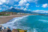 Sunny day at Puerto Banus beach at Marbella, Spain.