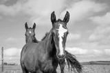 Small Mangalarga foal with its mother in the background loose in the grassy field.