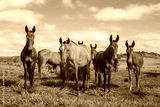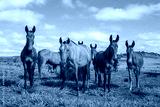 Group of Mangalarga Marchador horses and mares loose in the green pasture. Mares and foals on the farm loose.