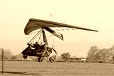 Ultralight airplane taking off from a farm strip