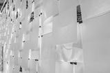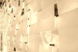 Empty bulletin board. The paper hangs on paper clips.