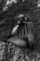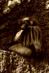A group of monkeys looking at each other and stealing each other. They play together and feed each other like a big family. They are Geladas, Theropithecus gelada to be precise.