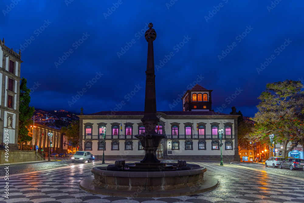 Night view of the Praca do Municipio at Funchal, Madeira, Portugal