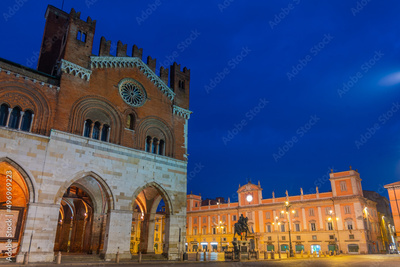 Sunrise over Piazza dei Cavalli in the center of Italian town Piacenza