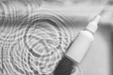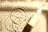 Serum bottle on blue water surface