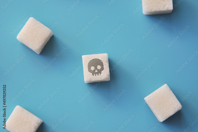 the image of a skull on sugar. A symbol of harm from sugar