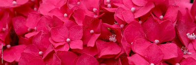 Close-up of a inflorescence of red hydrangea in the garden in the warm summer. Decorative bush plants reach very large sizes, bloom from spring to late autumn. Floral background. Soft focus