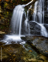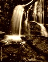 Water flows gently over the rocks and moss at Greenville's Wayside Park Middle Falls