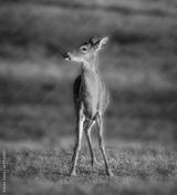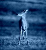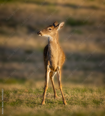 White tailed deer listening carefully on a agricultural field at dusk in summer. Wild male mammal in nature..tif