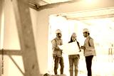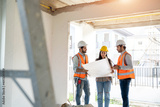 Engineers and architect discussion for plans for new home and working on a building site,Architecture concept.