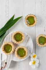 Pie susu pandan or pai susu or pandan milk pie is custard pie popular in Bali with pandan flavor.