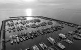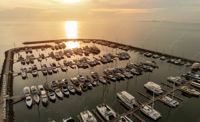Aerial top view a lot of Yacht and sailboat are moored at the quay. Yacht and sailboat most popular tourist attractions on the beach in vacation trip