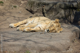 An Asiatic lioness, also known as Panthera leo persica, sleeps peacefully on a rock. The lion is such a big cat of prey.