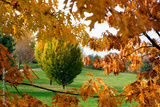jesień, park, łąka, trawa, pole, kolory, niebo, rozdroże, drzewa, liście, jesienią, złoty, chmury, krajobraz