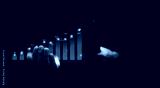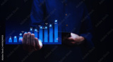 Trader holding digital graph on technology visual screen for trading online stock market forex or stock exchange