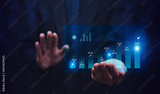 Trader holding digital graph on technology visual screen for trading online stock market forex or stock exchange