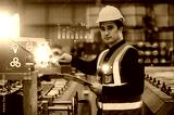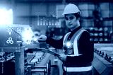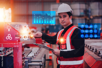 Engineer working in factory industrial and use technology visual screen control manufacturing in factory
