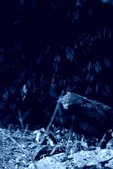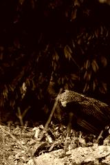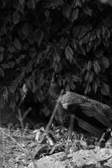 The peacock rattles its wheel feathers. As soon as the hen approaches, he turns his back on her, only to turn around again and show the wheel.