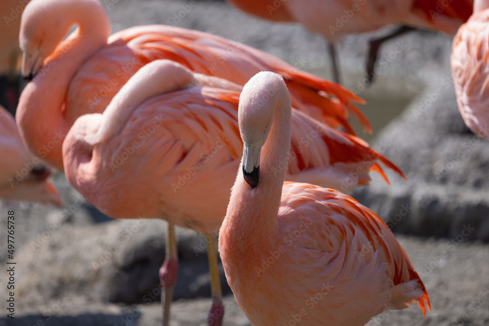 All flamingos depend on saline inland lakes for food. Plant and animal plankton grow in such waters, which the animals filter out of the water with their beaks bent downwards.