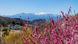 冠雪した吾妻連峰と春の花 福島