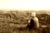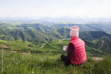 senior woman hiking in mountainous area. enjoy nature, have a good time. healthy lifestyle, leisure activity in old age. elderly travel